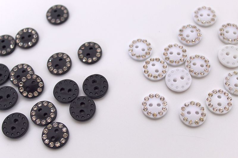 Knoflík plastový dvoudírkový s kamínky vel. 20"