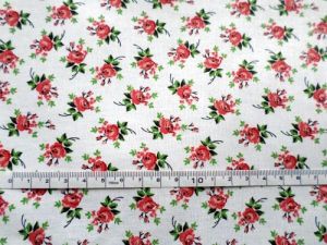Bavlněné plátno s jemným červeným kvítkem - vhodné na patchwork, povlečení, prostírky, polštáře, povlaky, bytový textil, roušky.