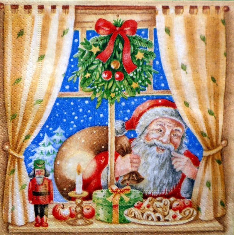 Ubrousky na decoupage - 9 různých motivů Santa v okně